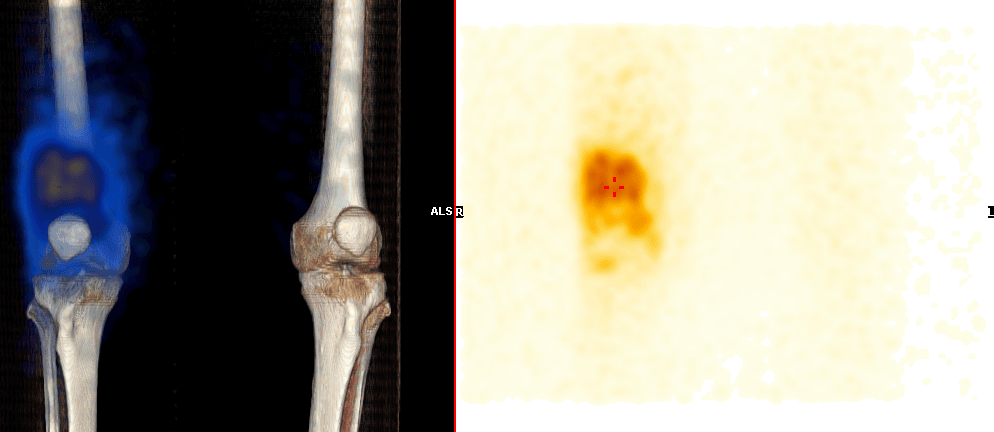 - Kontrola distribuce: postinjekční scintigrafie k ověření správné intraartikulární aplikace.